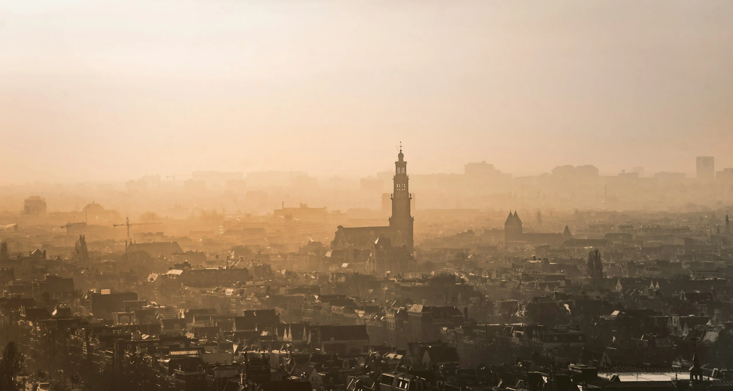 ‘Amsterdam grew into a city of unusual size. The town was built on the mouth of a river. On each side of the Amstel a dike was erected, forming the foundation of a very modest settlement. Along the ridges ran the narrow main streets; stretching down to the river wharves were rows of merchants’ houses.’