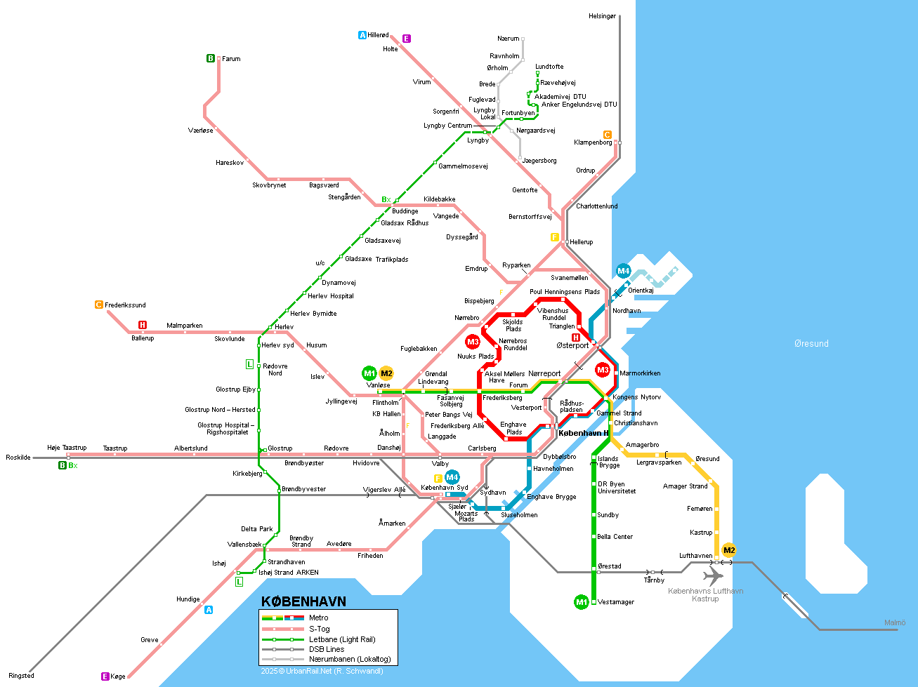 The above map represents the urban metro and light rail network of the city and immediate suburbs. This shows individual rail routes and the level of connectivity for urban travellers across the expanding city’.